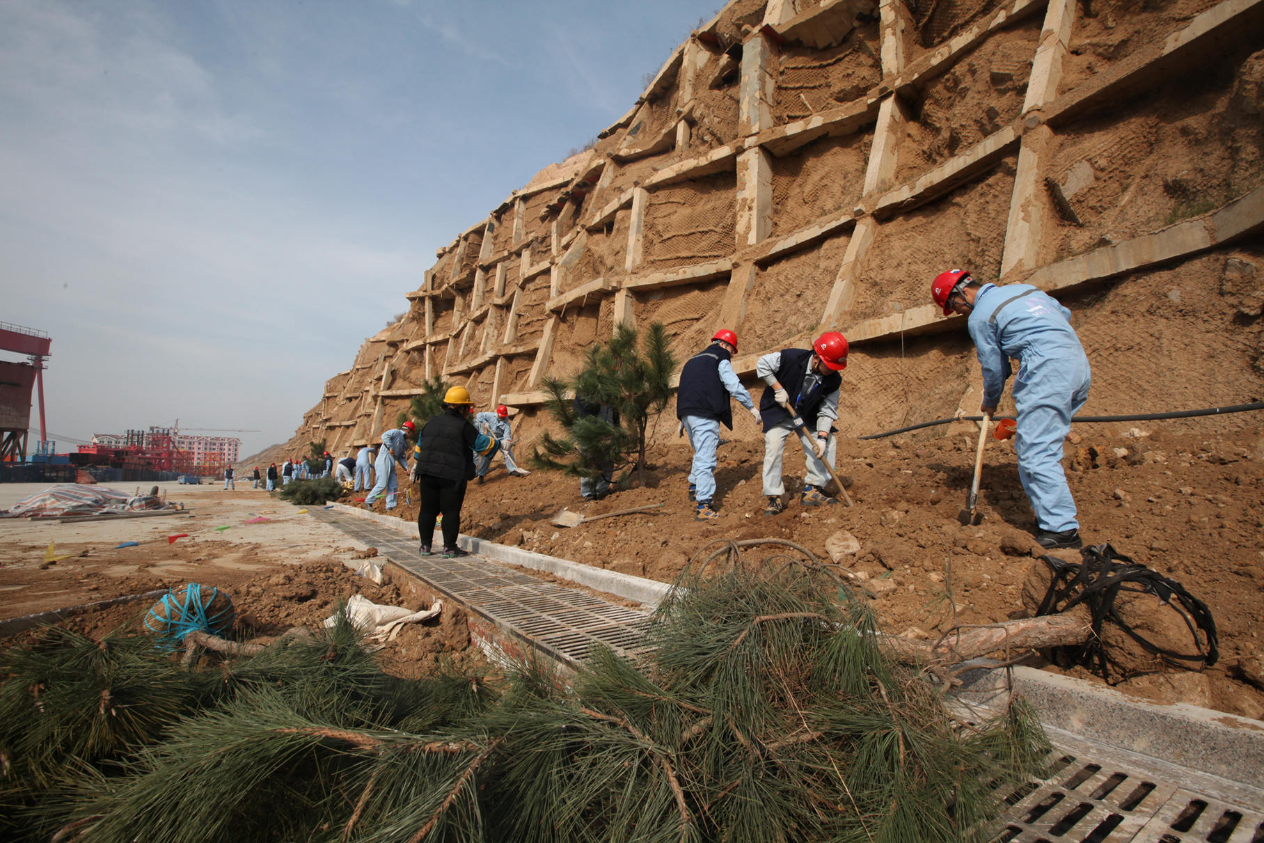 紙上得來終覺淺,絕知此事要躬行。揮鍬的汗水在背上流淌,植樹的快樂在心中徜徉。兩個小時后,原本光禿貧瘠的護(hù)坡區(qū),在大家的努力下煥然一新,放眼望去,一片綠色,讓人切身感受到了濃濃的春意和盎然的生機與希望。