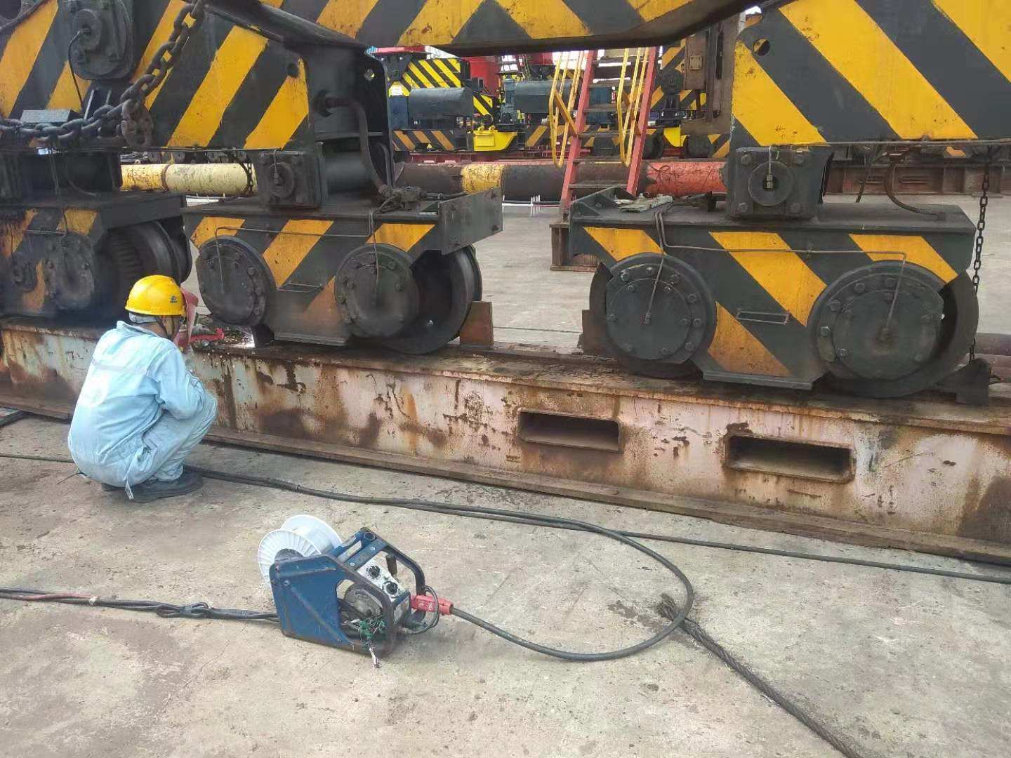 海西重機8月9日起,進入臺風應急響應狀態(tài),由公司黨委副書記、總經(jīng)理張懷志,副總經(jīng)理代振華組織召開防臺布置會,部署安排各項應急措施,啟動臺風防汛應急預案,嚴格按預警分級管控要求進行落實。公司領導以上率下,帶領各相關部門嚴格落實24小時值班制度。各部門積極響應,通力合作:項目管理部負責每天通報臺風最新信息以及每天一早一晚通報G227運輸船在錨地的拋錨狀態(tài);安技環(huán)保部總體牽頭,做好相應布置工作的檢查和通報,統(tǒng)一在微信“項目管理平臺”進行通報,同時成立三個專業(yè)組(廠房設備組由固定資產(chǎn)部負責,船舶碼頭組由項目管理部、生活服務中心負責,外場產(chǎn)品組由安技環(huán)保部、總裝部、鋼構部、物資保障部負責);總裝部負責對正在安裝調試的門機、卸船機等設備進行防風,特別注意現(xiàn)場的散件、電控柜的防雨;海工部和生活服務中心負責兩個平臺、藍海300、振江和振興泊纜繩的檢查和加固;物資部負責外場材料(特別是石棉板和電氣原件)和行車的防風防雨;生活服務中心對廠房內和碼頭的監(jiān)控設備做一次全面的檢查……