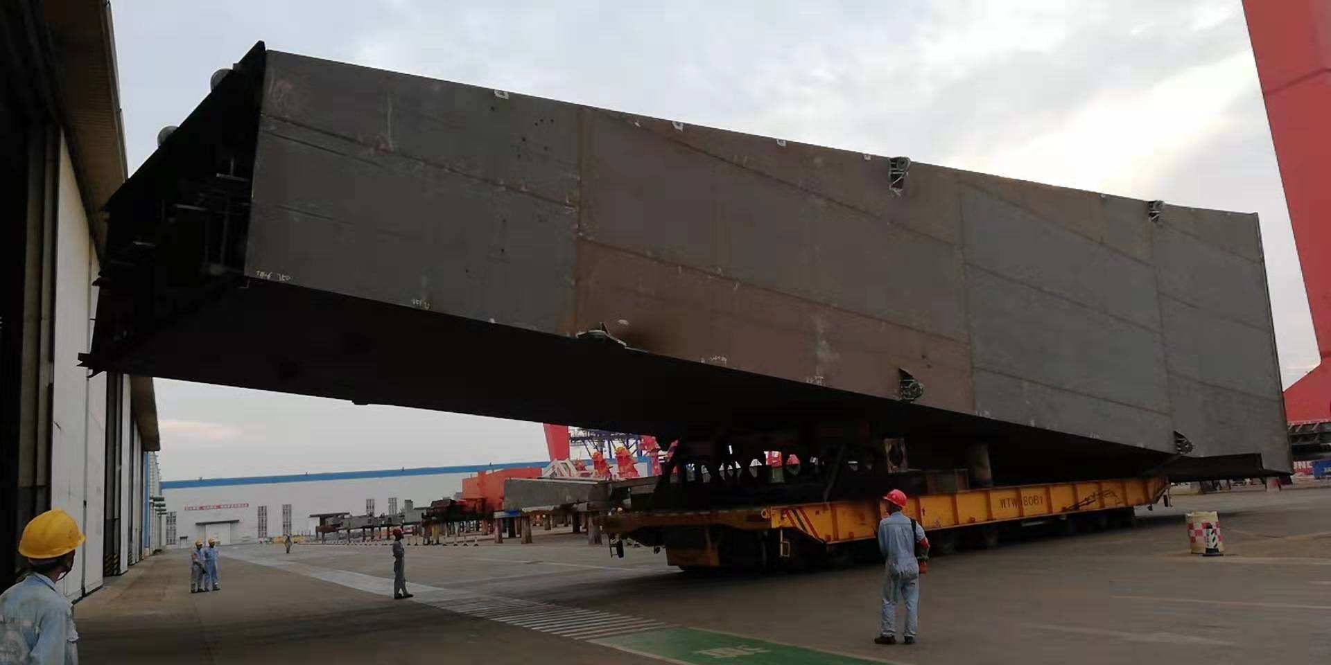8月23日晚上19:30分,運載M30剛性腿整體分段的380T平板車,在操控人員的審慎操控下,緩緩駛出海西重機鋼構制作車間大門,成功轉運出車間!這一幕看似平淡無奇的場景,凝結了多少員工的汗水和智慧,后面又有多少創(chuàng)新,唯有親身經歷了這場“戰(zhàn)斗”的人才能真正體會。