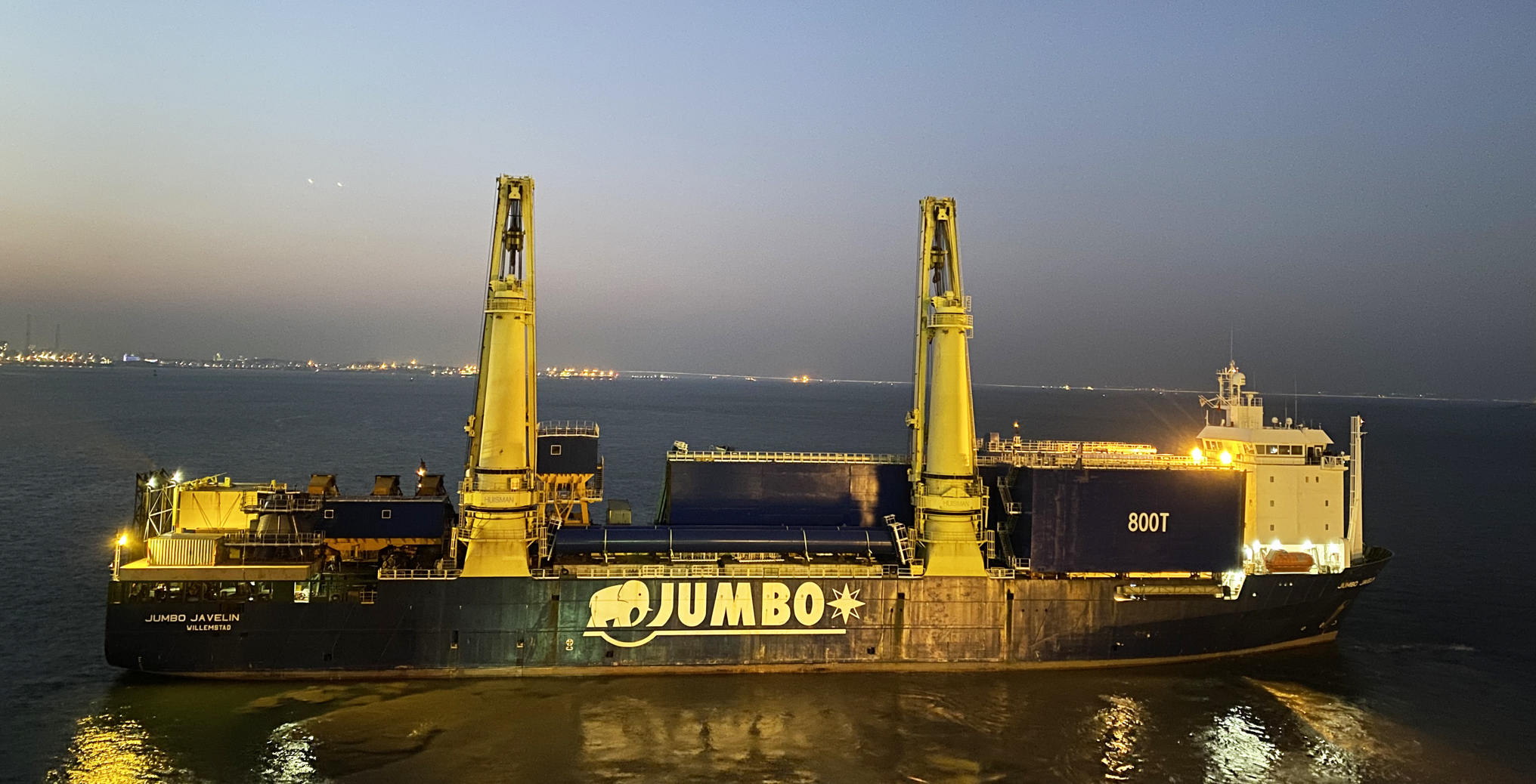 海西重機從設(shè)計研發(fā)、生產(chǎn)管理、質(zhì)量控制、風(fēng)險管控等方面嚴(yán)格把控,從項目開始即高質(zhì)量嚴(yán)要求,對設(shè)備性能、安全性、使用維護(hù)等設(shè)計全面精心把關(guān)審核,對尺寸、精度、外觀、安裝接口位置等高精度控制,得到業(yè)主及駐廠意大利船級社監(jiān)理的認(rèn)可??紤]到用戶現(xiàn)場無大型起重設(shè)備,此次發(fā)運采用具有2臺900噸克令吊的重吊船進(jìn)行作業(yè),滿足了所有吊裝和運輸要求,不僅節(jié)約了項目成本,而且提高了裝卸船的工作效率。