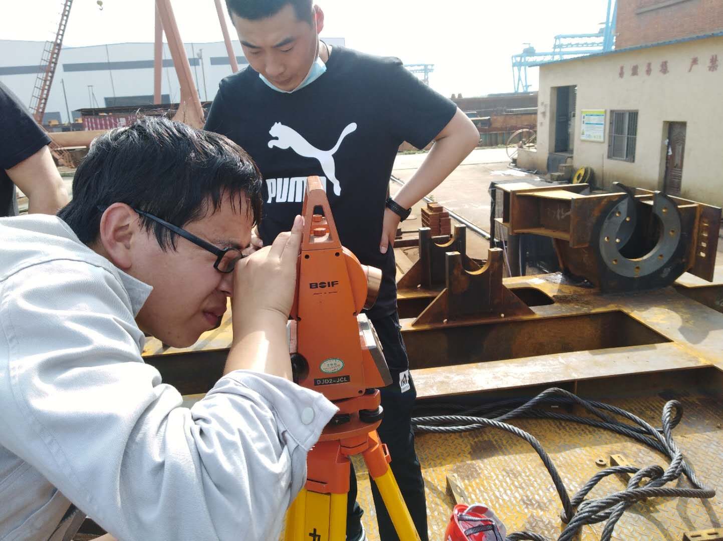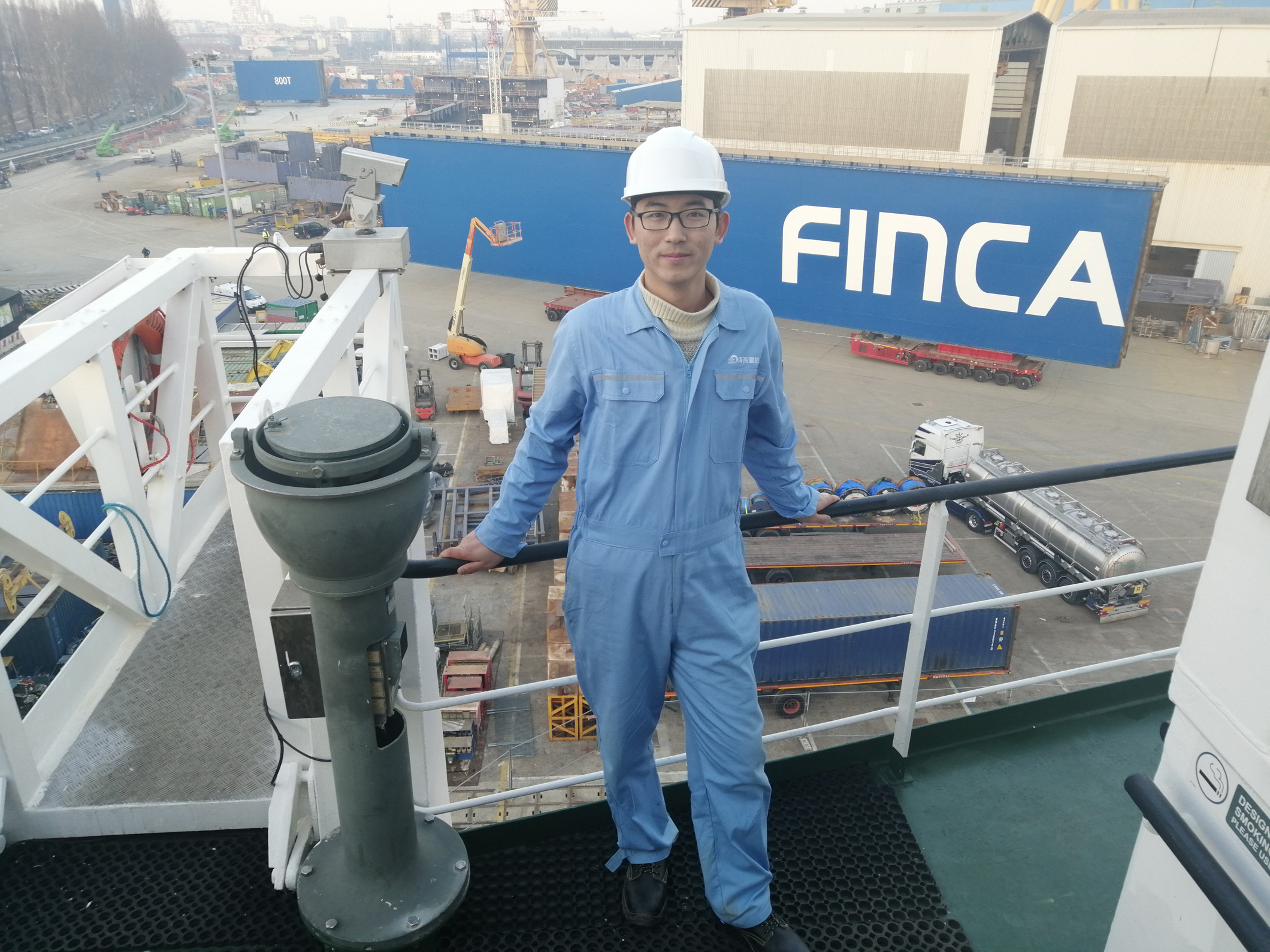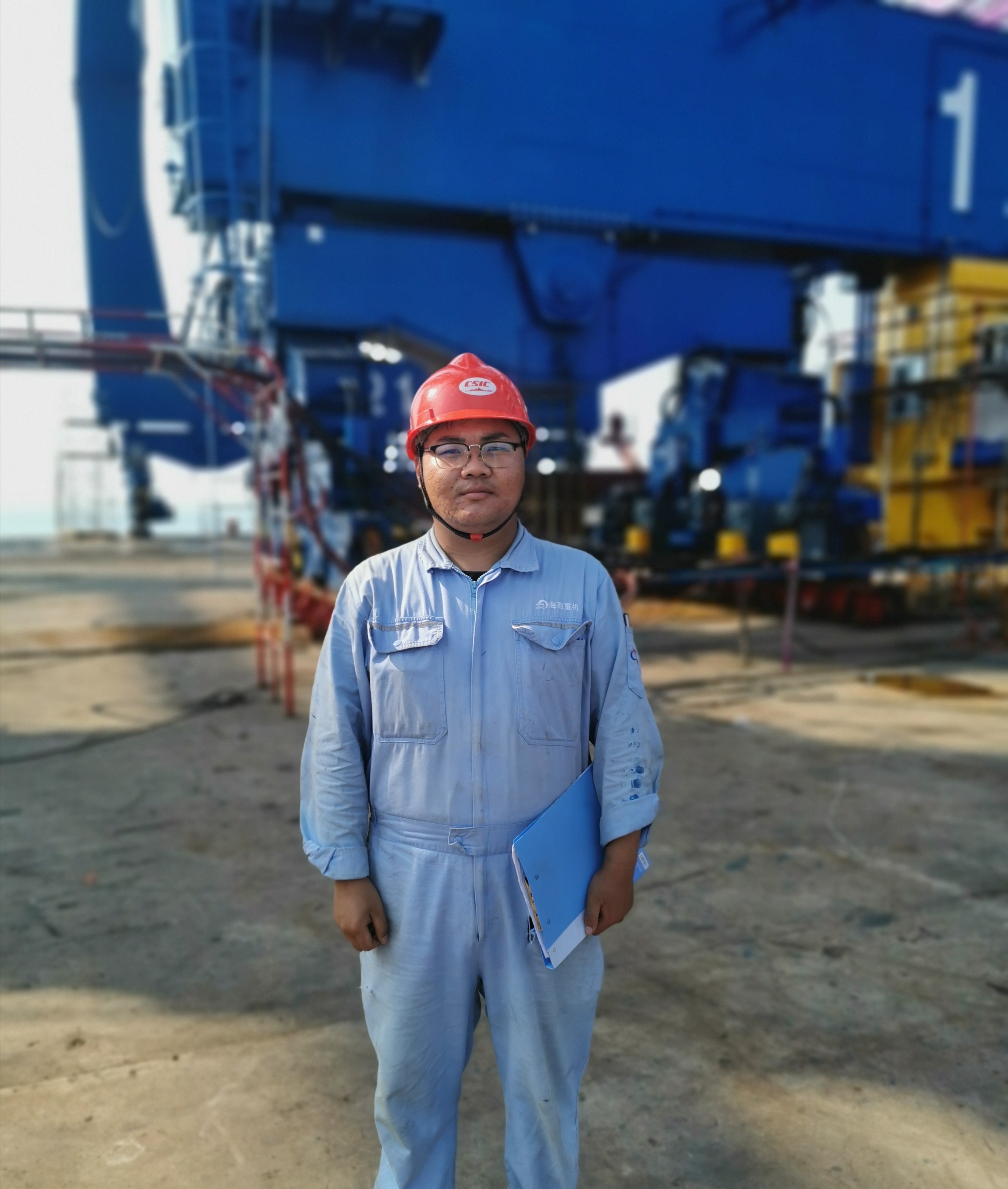 “我先后前往紅光碼頭總裝現(xiàn)場以及九橋鋼結(jié)構(gòu)制作現(xiàn)場,幾乎每天都有雨,現(xiàn)場施工壓力大,經(jīng)常要冒雨趕工,在雨中工作已經(jīng)成為常態(tài),哪怕渾身濕透也要繼續(xù)。通過與施工隊溝通,在師傅牟壽堂的指導(dǎo)下,清點(diǎn)現(xiàn)場物資,不斷解決現(xiàn)場技術(shù)問題,加深了對整機(jī)結(jié)構(gòu)和裝配的理解。現(xiàn)場碼頭吊裝需要使用浮吊,浮吊方案的編制十分復(fù)雜,不僅僅要考慮吊高、幅度與載重,還要考慮水位、吊裝角度、臂架干涉等一系列的問題,為了把參數(shù)計算準(zhǔn)確,經(jīng)常加班加點(diǎn),還好努力就有收獲,現(xiàn)在對吊裝作業(yè)的理解更深了?!眲㈤F旗在感嘆自己的成長,感恩于他的付出,畢竟無論是小青年還是老青年,這片藍(lán)天是靠大家共同撐起的。