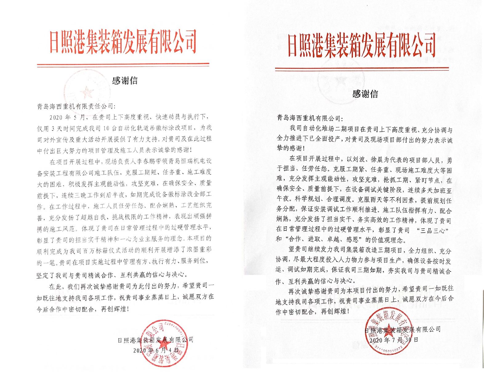 近日,中國船舶集團(tuán)旗下武漢船機(jī)海西重機(jī)公司收到兩封來自日照港集裝箱發(fā)展有限公司的感謝信,字里行間表達(dá)了對海西重機(jī)在用戶重要節(jié)點(diǎn)中勇于擔(dān)當(dāng)、積極配合、出色完成任務(wù)的表現(xiàn)和付出表示誠摯的感謝,也充分說明了用戶對海西重機(jī)產(chǎn)品和服務(wù)的認(rèn)可。