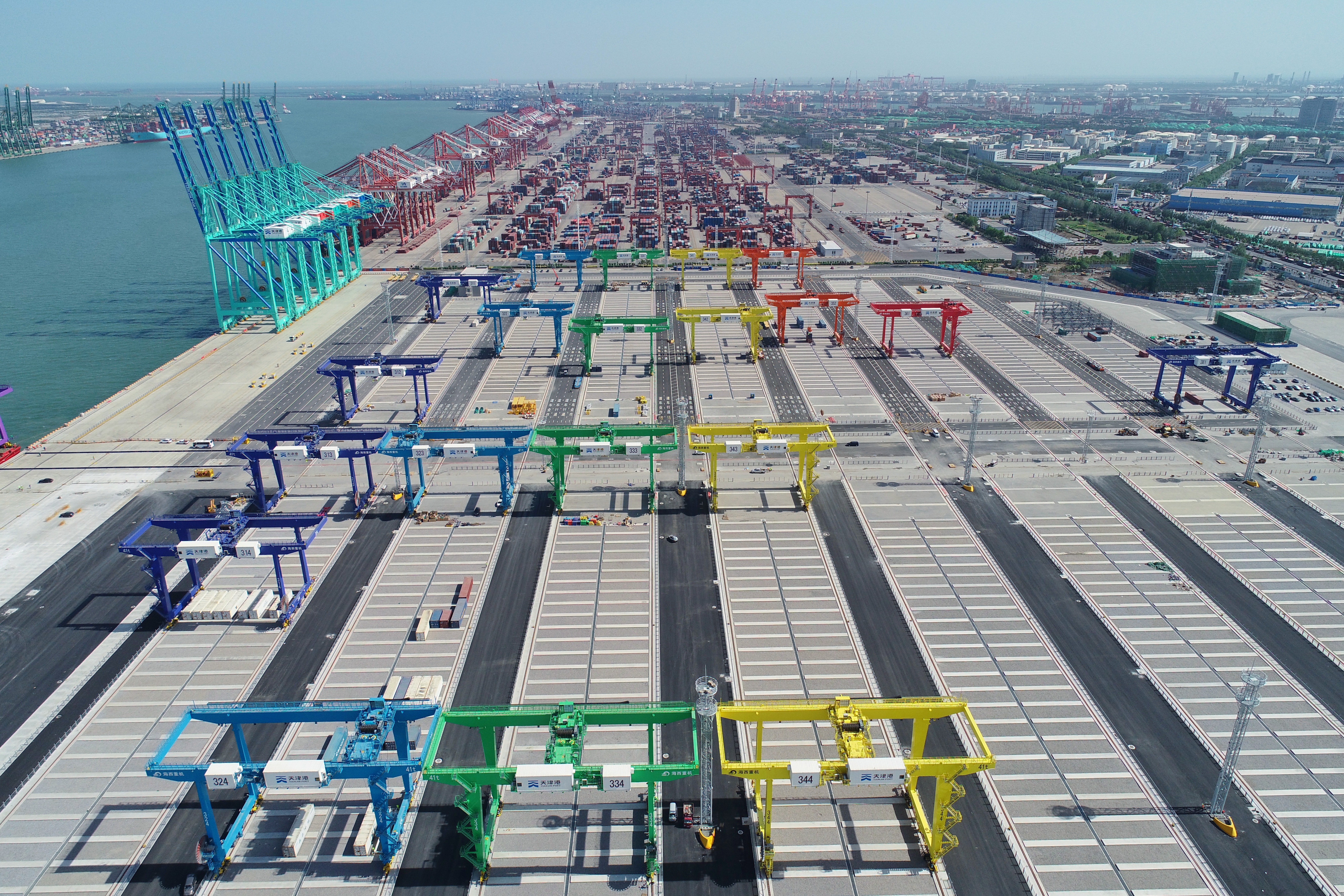 9月25日,中國船舶集團(tuán)旗下武漢船機(jī)海西重機(jī)公司為天津港北疆港區(qū)C段智能化集裝箱碼頭二期工程項(xiàng)目打造的首批7臺自動化軌道吊全部順利完成上岸,與一期自動化軌道吊會師天津港。