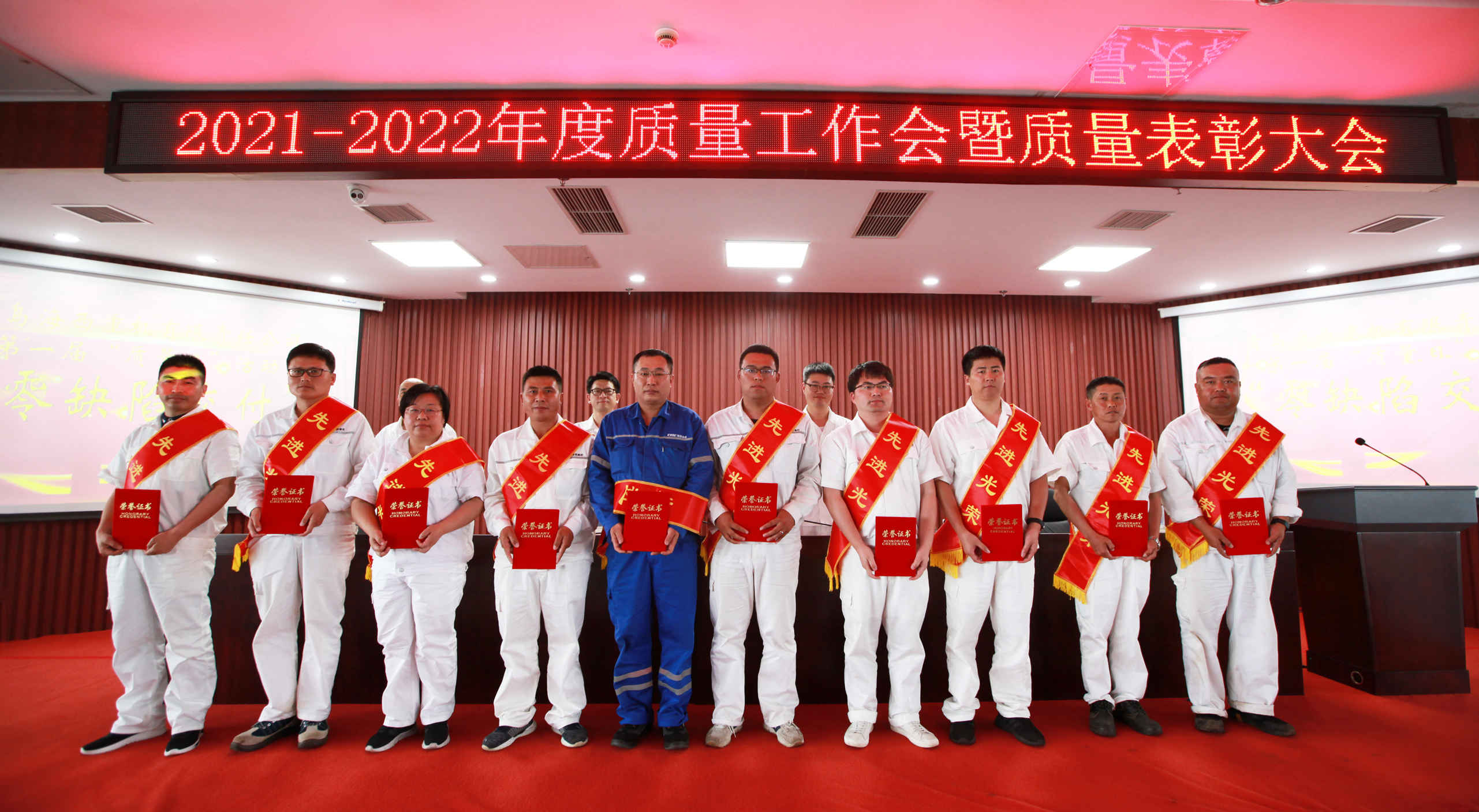 6月22日,中國船舶集團(tuán)旗下武漢船機(jī)海西重機(jī)公司2021-2022年度質(zhì)量工作會(huì)暨質(zhì)量表彰大會(huì)在901會(huì)議室隆重召開。公司黨委書記、董事長李儒新,黨委副書記、總經(jīng)理蔣新標(biāo),黨委副書記、紀(jì)委書記朱聲凱,副總經(jīng)理?xiàng)钌俨ǔ鱿瘯?huì)議,公司各部門負(fù)責(zé)人、各協(xié)理公司代表、質(zhì)量先進(jìn)個(gè)人、質(zhì)量先進(jìn)班組參加了大會(huì)。大會(huì)對(duì)質(zhì)量先進(jìn)個(gè)人、質(zhì)量先進(jìn)班組、工匠獎(jiǎng)、匠心獎(jiǎng)獲得者進(jìn)行了表彰與頒獎(jiǎng)。