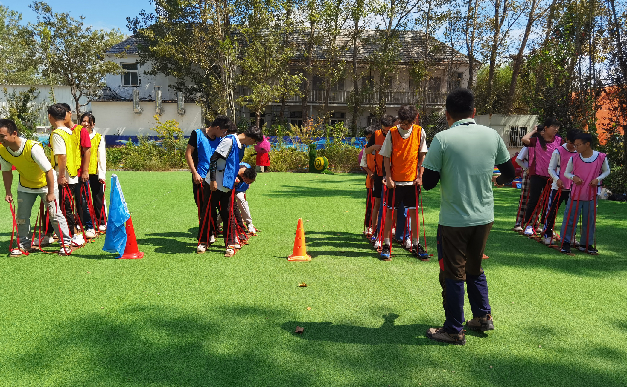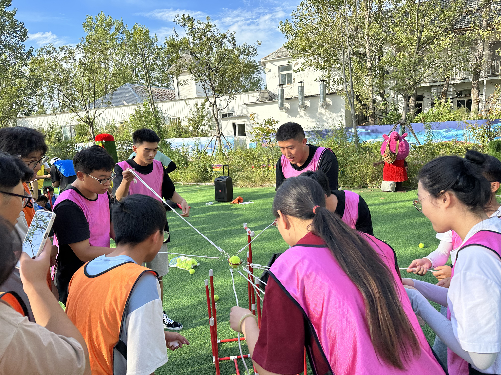秋風(fēng)送爽,秋意宜人。早上九點(diǎn)鐘,大家到達(dá)了嶗山王哥莊拓展基地,活動(dòng)拉開帷幕。新員工們分成了“美團(tuán)隊(duì)”、“餓了么隊(duì)”、“汪汪隊(duì)”、“芭比猛男隊(duì)”四支隊(duì)伍。選隊(duì)長、起隊(duì)名、喊隊(duì)訓(xùn),大家相互了解加深,團(tuán)隊(duì)氛圍逐漸熱烈,為接下來的培訓(xùn)做好準(zhǔn)備。各種室外室內(nèi)拓展項(xiàng)目——“挑戰(zhàn)團(tuán)隊(duì)極限”、“有軌電車”、“急速60秒”、“旱地冰壺挑戰(zhàn)賽”、“團(tuán)隊(duì)金字塔”,用豐富多彩的趣味游戲寓教于樂,幫助學(xué)員體會(huì)團(tuán)隊(duì)合作的重要性。