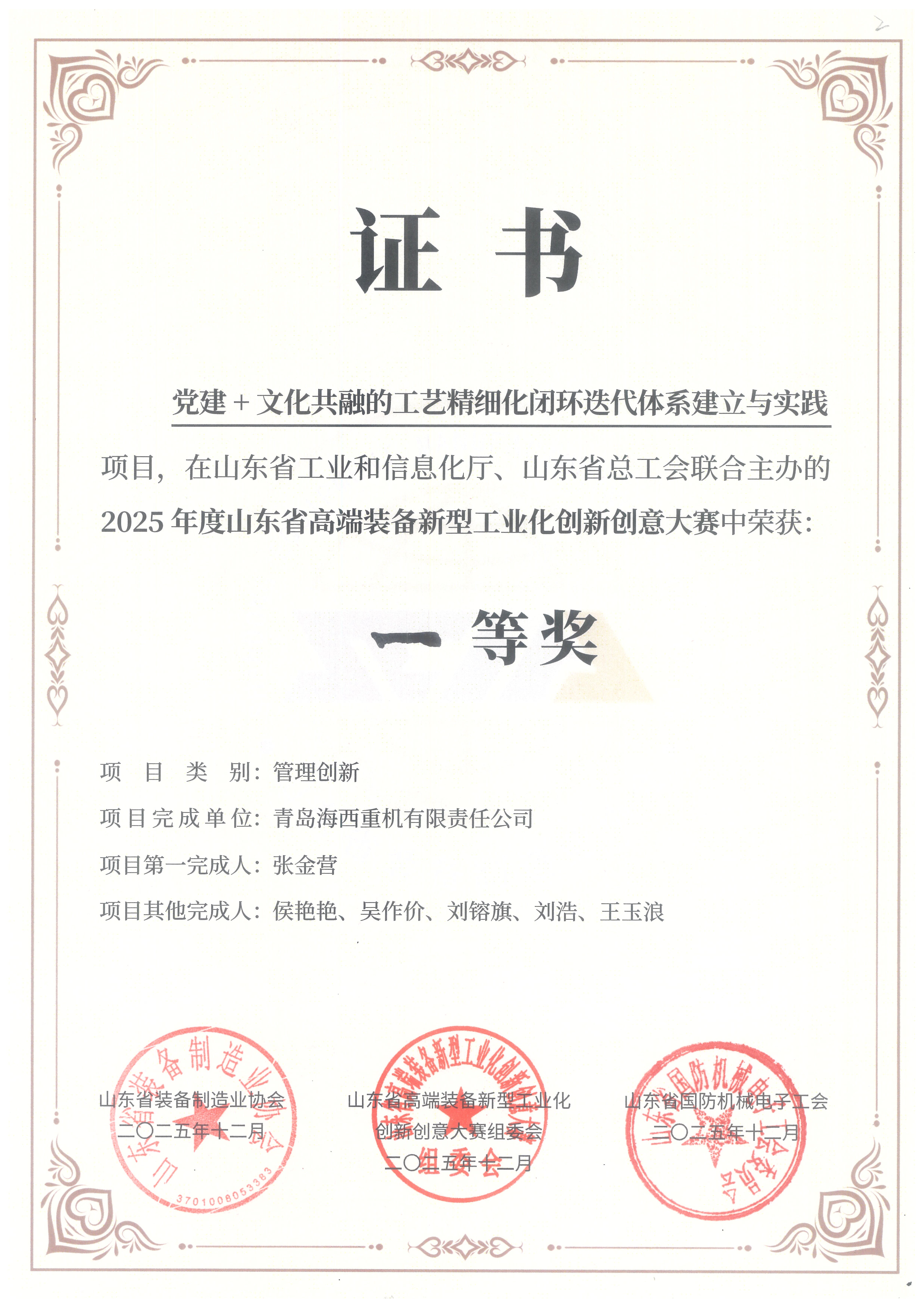 “黨建+文化共融的工藝精細化閉環(huán)迭代體系建立與實踐”——管理創(chuàng)新一等獎