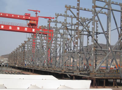 天津新港600T造船龍門吊是青島海西重機(jī)有限責(zé)任公司承接的第一臺大型龍門起重機(jī),合同總額1.05億元,是公司關(guān)鍵項目。公司領(lǐng)導(dǎo)高度重視,專門成立了以公司總經(jīng)理為組長的項目組,在全公司實(shí)施精品戰(zhàn)略,本著“作一臺設(shè)備,占一片市場,交一個朋友”的宗旨,從聯(lián)合設(shè)計到注重制造的每一個細(xì)節(jié),海西重機(jī)都組織了多次討論,全力保證產(chǎn)品質(zhì)量。