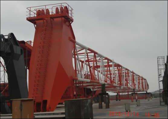 科研43A是我公司為江蘇南通韓通船舶重工有限公司生產(chǎn)的250T-30m風(fēng)車安裝船用回轉(zhuǎn)起重機,整機重約為650T。這是我公司第一次生產(chǎn)海工產(chǎn)品,設(shè)計難度大,技術(shù)要求高,施工過程中出現(xiàn)問題多,而且工期要求緊。從一開始制作公司領(lǐng)導(dǎo)就極為重視,專門成立了以副總經(jīng)理為組長的生產(chǎn)小組,對生產(chǎn)中出現(xiàn)的問題盡量簡化程序,以最快的速度予以解決。目前,我公司負責(zé)生產(chǎn)的科研43A各部套結(jié)構(gòu)件已順利制作完成,通過業(yè)主驗收,已達到發(fā)運條件。
