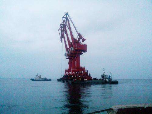 2012年8月17日繼3臺發(fā)往印尼的單臂架門座式起重機發(fā)船后,3臺MQ2535四連桿門座起重機從公司碼頭起航,發(fā)往連云港東泰公司碼頭。