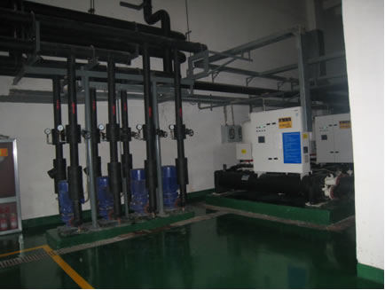 其工作原理是公司利用緊鄰黃海的地理優(yōu)勢(shì),利用夏季時(shí)(-5米以下處)海水溫度在22℃左右(明顯低于戶外溫度),通過熱泵系統(tǒng)提取其中的能量差(5℃~6℃)用于辦公制冷;而冬季海水溫度5℃左右(明顯高于戶外溫),仍然通過熱泵系統(tǒng)提取其中的能量差(2℃~3℃),實(shí)現(xiàn)供暖或供熱水的功能。同時(shí),利用公司空壓機(jī)站的循環(huán)冷卻水(夏季冷卻水溫約40℃,冬季冷卻水溫約22℃),通過熱泵系統(tǒng)實(shí)現(xiàn)常年提供洗浴熱水(45℃左右)的能力。