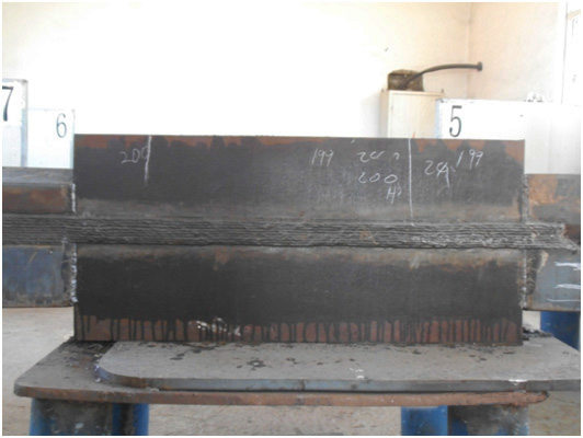 因齒條的鋼材材質(zhì)是經(jīng)過調(diào)質(zhì)處理的高強(qiáng)鋼,焊接工藝要求非常嚴(yán)格,每天清晨6點(diǎn)鐘就要開始預(yù)熱,經(jīng)過3小時(shí)的加熱、保溫才能施焊,一天焊完后晚上還要進(jìn)行3個(gè)小時(shí)的熱處理。經(jīng)過10多天的日夜奮戰(zhàn),厚114mm、長(zhǎng)800mm的兩塊試板“一次焊接工藝評(píng)定”和“補(bǔ)焊工藝評(píng)定”均一次性順利通過,并得到了美國(guó)ABS船級(jí)社船檢師的高度贊揚(yáng)。此兩項(xiàng)工藝評(píng)定的順利通過,為F3項(xiàng)目后期最困難、要求也最高的齒條焊接奠定了堅(jiān)實(shí)的基礎(chǔ),鋪平了道路。