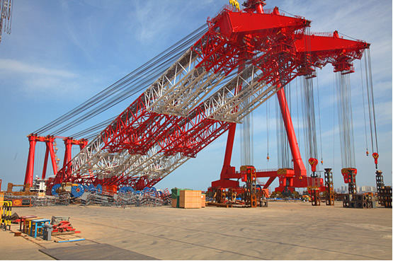 隨著最后一個(gè)主鉤緩緩升起,由我司為煙臺(tái)打撈局承制的3600t雙臂架浮式起重機(jī)(F1)整體安裝完成,項(xiàng)目進(jìn)入調(diào)試及驗(yàn)收階段。