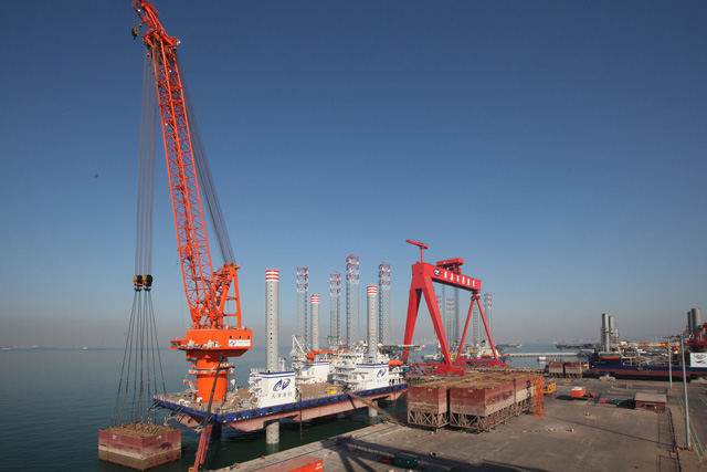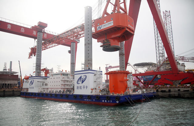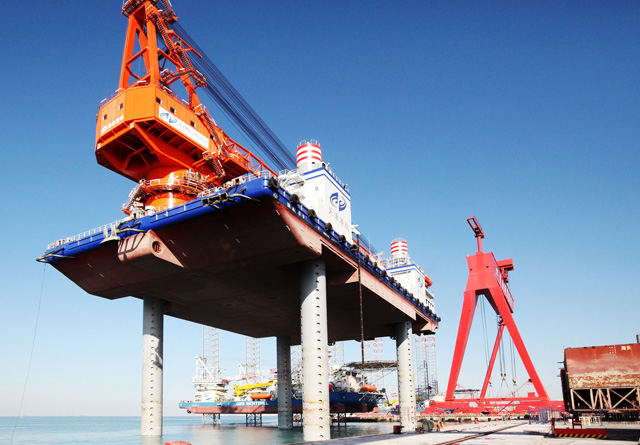 200噸全回轉(zhuǎn)浮式起重機(jī)和3400噸液壓插銷升降系統(tǒng)作為該項(xiàng)目核心設(shè)備,完全實(shí)現(xiàn)了自主設(shè)計(jì)和國(guó)產(chǎn)化制造。