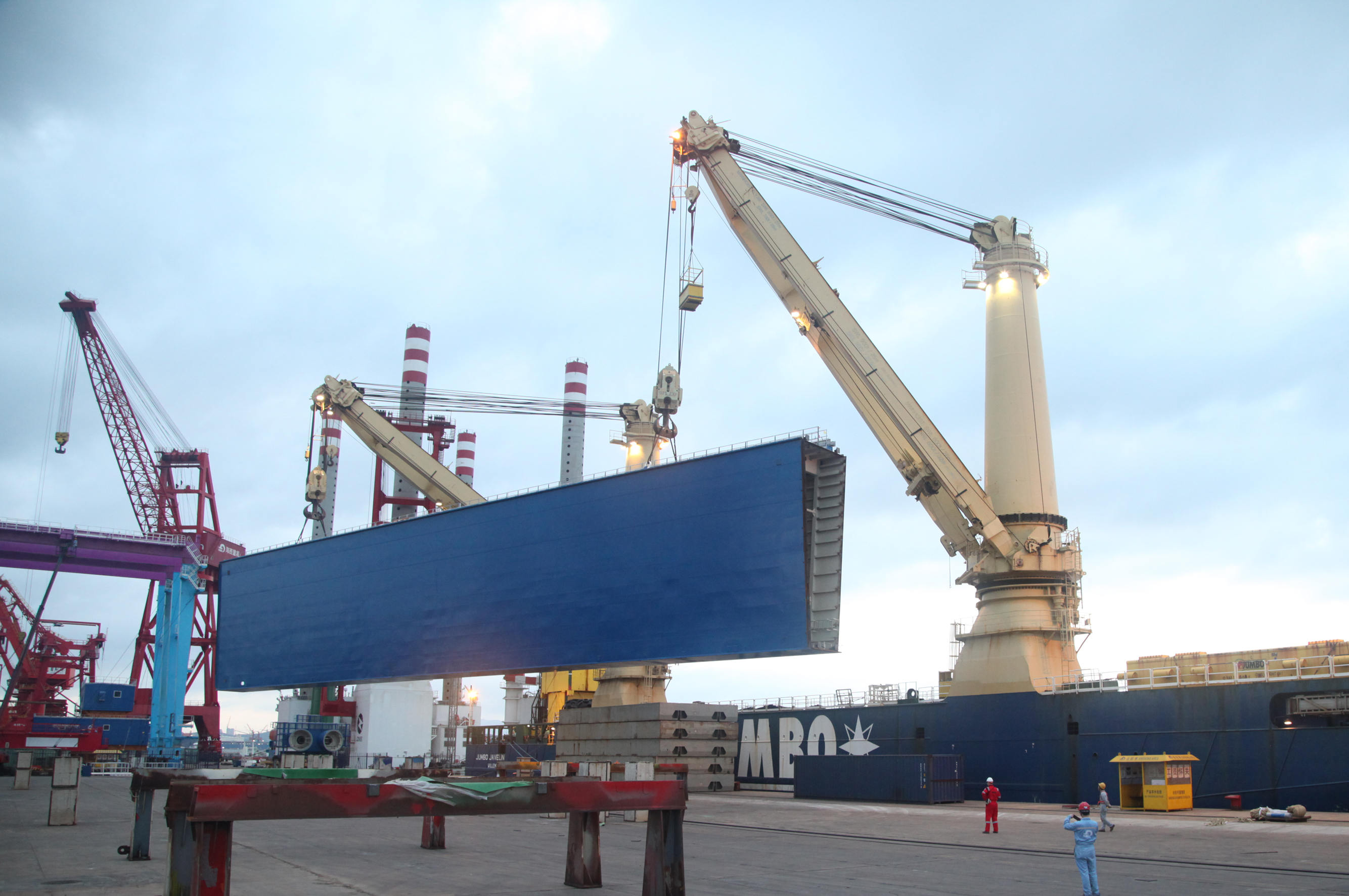 海西重機從設(shè)計研發(fā)、生產(chǎn)管理、質(zhì)量控制、風(fēng)險管控等方面嚴(yán)格把控,從項目開始即高質(zhì)量嚴(yán)要求,對設(shè)備性能、安全性、使用維護(hù)等設(shè)計全面精心把關(guān)審核,對尺寸、精度、外觀、安裝接口位置等高精度控制,得到業(yè)主及駐廠意大利船級社監(jiān)理的認(rèn)可??紤]到用戶現(xiàn)場無大型起重設(shè)備,此次發(fā)運采用具有2臺900噸克令吊的重吊船進(jìn)行作業(yè),滿足了所有吊裝和運輸要求,不僅節(jié)約了項目成本,而且提高了裝卸船的工作效率。
