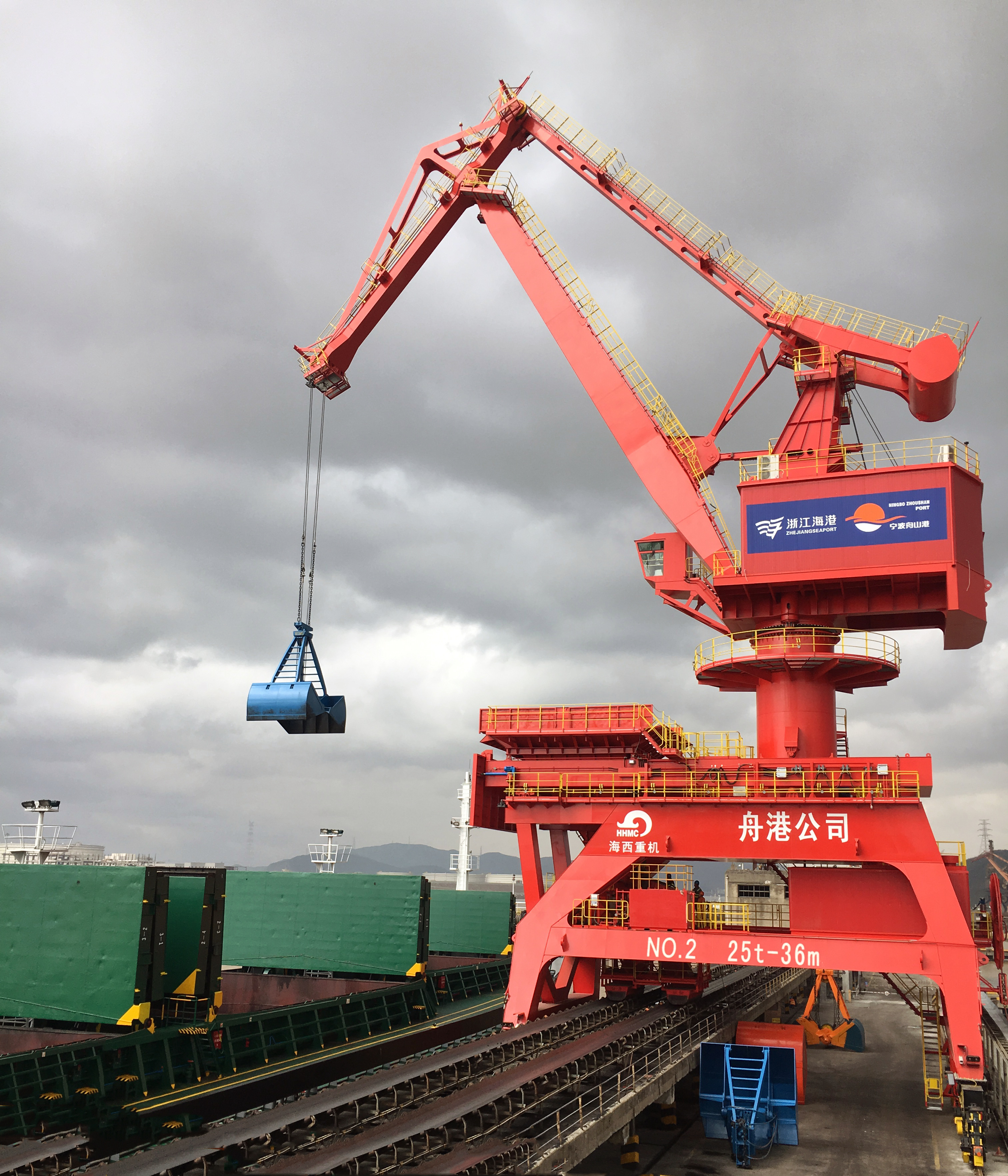 5月12日,武漢船機(jī)海西重機(jī)為寧波舟山港老塘山碼頭打造的2臺(tái)25T-36M帶斗門(mén)機(jī)順利交付。