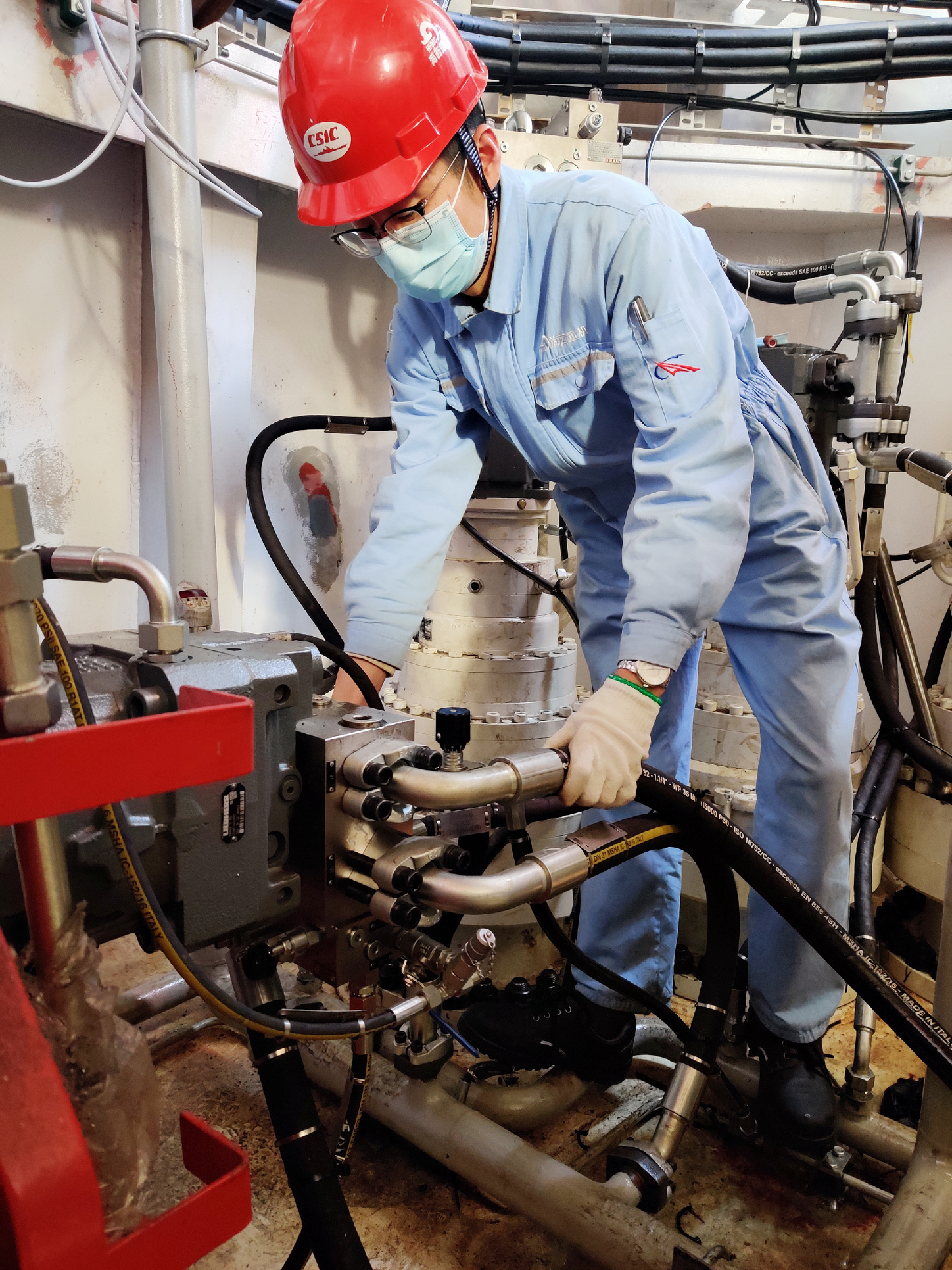 從管路預制,泵壓試驗,酸洗串油,到管路復裝,張偉康總是在馮鵬超的傳幫帶下,分工合作,恰似黃金拍檔。在海工設備后期液壓系統(tǒng)調(diào)試的半個月中,他們和總部工程師一起,每天主動加班調(diào)試到深夜。由于產(chǎn)生液壓系統(tǒng)故障的可能性因素較多,排查起來較為困難,面對調(diào)試中發(fā)生的諸多難題,他們迎難而上,敢于擔當,認真分析討論各種解決方案,并嚴格進行逐一排查,最終完美解決了故障。張偉康新人得力,敢于主動擔當,堅守液壓潤滑陣地,為保證整個項目按時交付爭分奪秒。