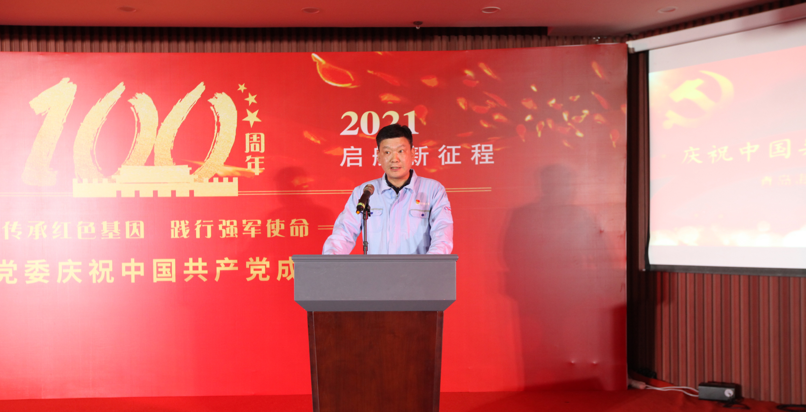 今年是中國共產(chǎn)黨成立100周年,百年征程,波瀾壯闊;百年初心,歷久彌堅(jiān)。在文藝匯演開始前,全體起立,奏國歌;模范黨員宋祥吉同志帶領(lǐng)新黨員進(jìn)行了莊嚴(yán)的入黨宣誓、老黨員重溫入黨誓詞。公司黨委書記、董事長鄧振山發(fā)表了開場講話《汲取紅色智慧 凝聚奮進(jìn)力量 譜寫新時代企業(yè)高質(zhì)量發(fā)展新篇章》。
