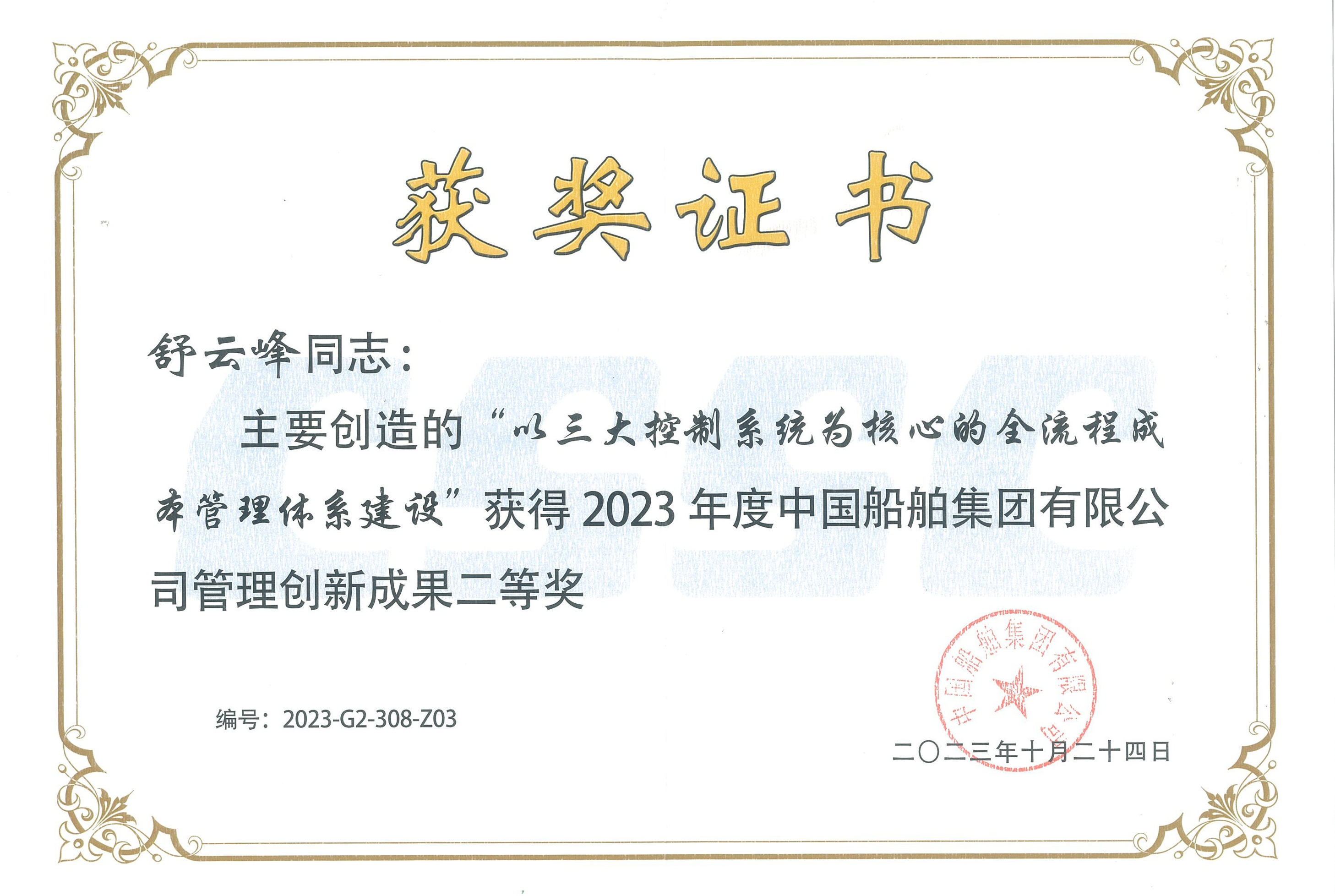 海西重機“以三大控制系統(tǒng)為核心的全流程成本管理體系建設(shè)” 榮獲中國船舶集團管理創(chuàng)新成果二等獎