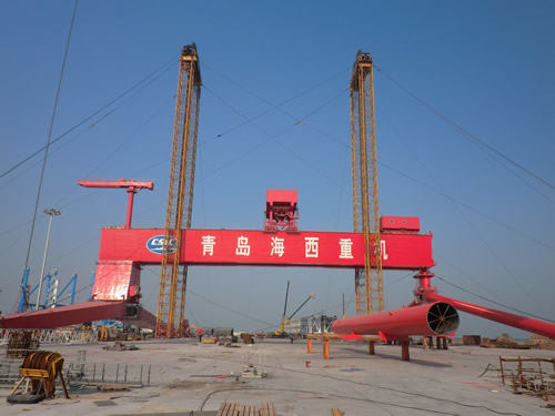 由青島海西重機(jī)自主設(shè)計(jì)、建造和使用的1600T大型龍門(mén)式起重機(jī)于2012年11月23日順利提升。