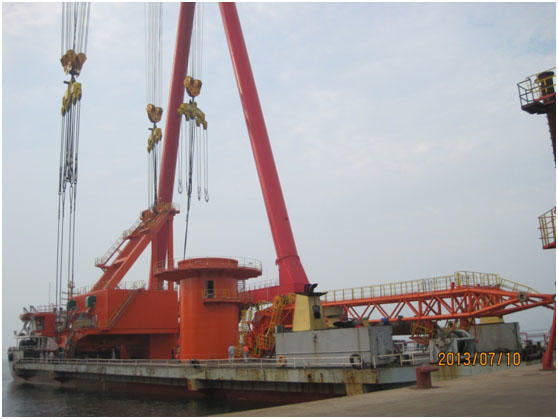 G127項目制作后期,遇到連續(xù)陰雨天氣,對構(gòu)件涂裝工作造成了極大影響,經(jīng)過各部門的團結(jié)協(xié)作,使該項目在預定的時間完成了裝船工作。該項目的成功制作,為我司設(shè)計與制作大噸位的固定式回轉(zhuǎn)起重機積累了寶貴的經(jīng)驗,同時也成功驗證了我司可以合理利用1600T龍門吊和突堤碼頭港池進行有效配合,直接進行港機大件甚至是整機的吊裝上船作業(yè)。